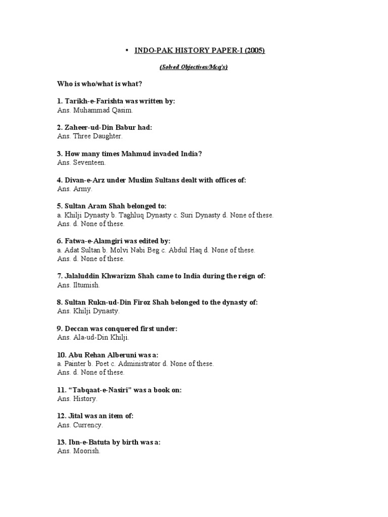 INDO-PAK HISTORY PAPER-I (2005)