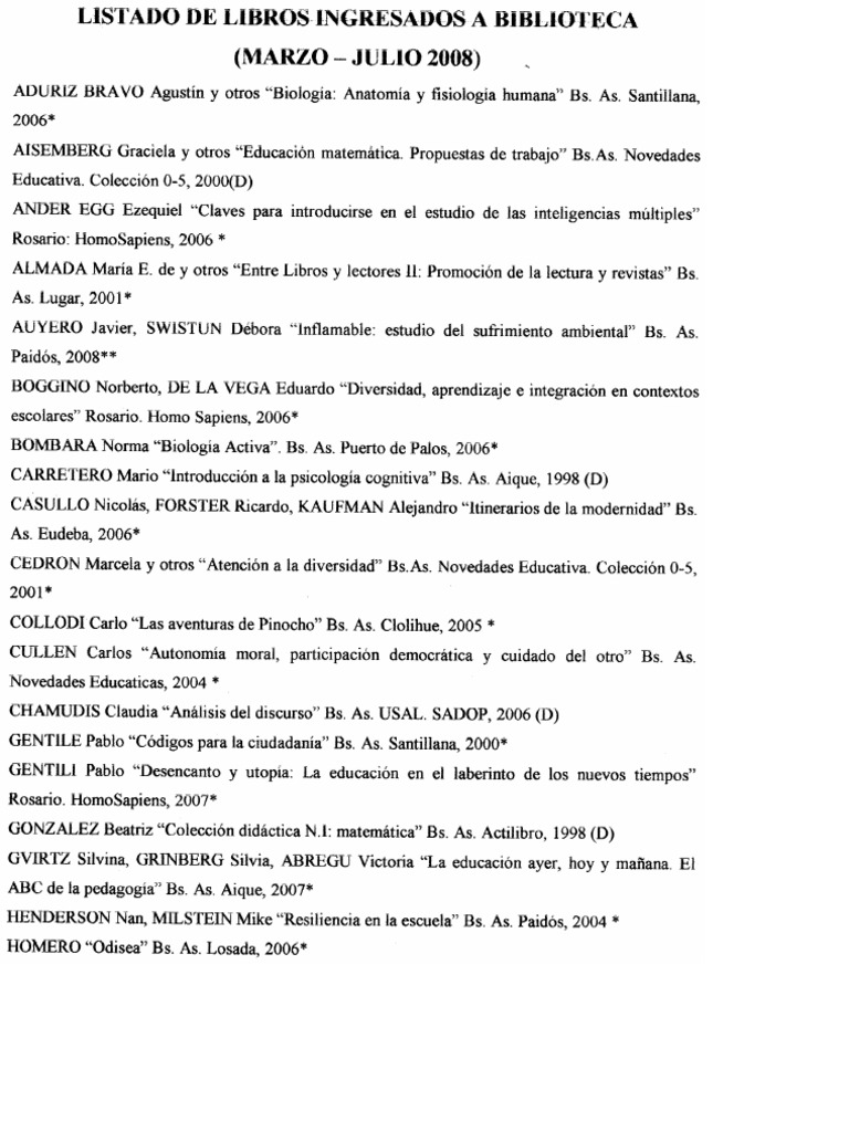 HOMERO “Odisea” Bs. As. Losada, 2006*KAPLAN Carina “Buenos y malos alumnos” Bs. As. Aique, 2008*