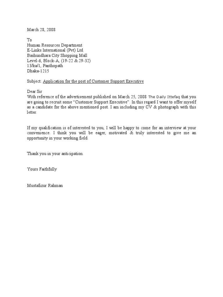 are going to recruit some “Customer Support Executive”. In this regard I want to offer myself