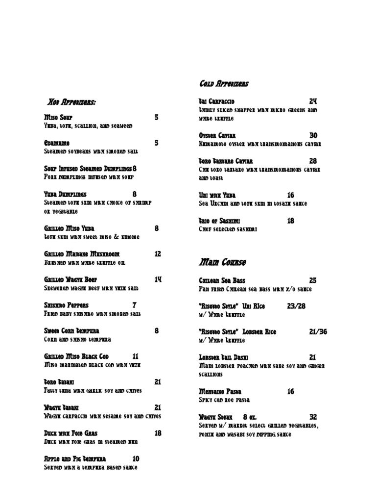 Grilled Wagyu Beef 14 Chilean Sea Bass 25