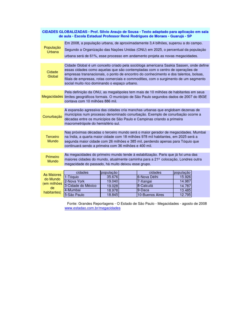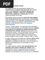 CIDADES GLOBALIZADAS - Prof.