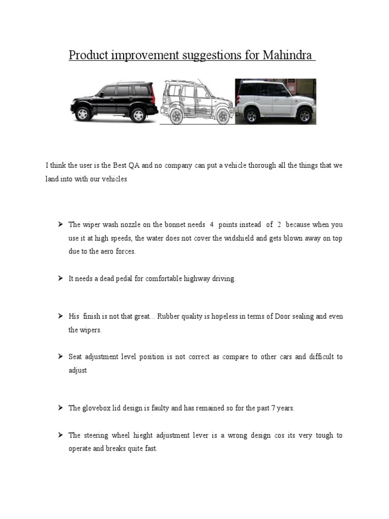 Product improvement suggestions for Mahindra