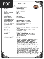 Hobbies : Reading, Cricket, Writing, Social Work etc.