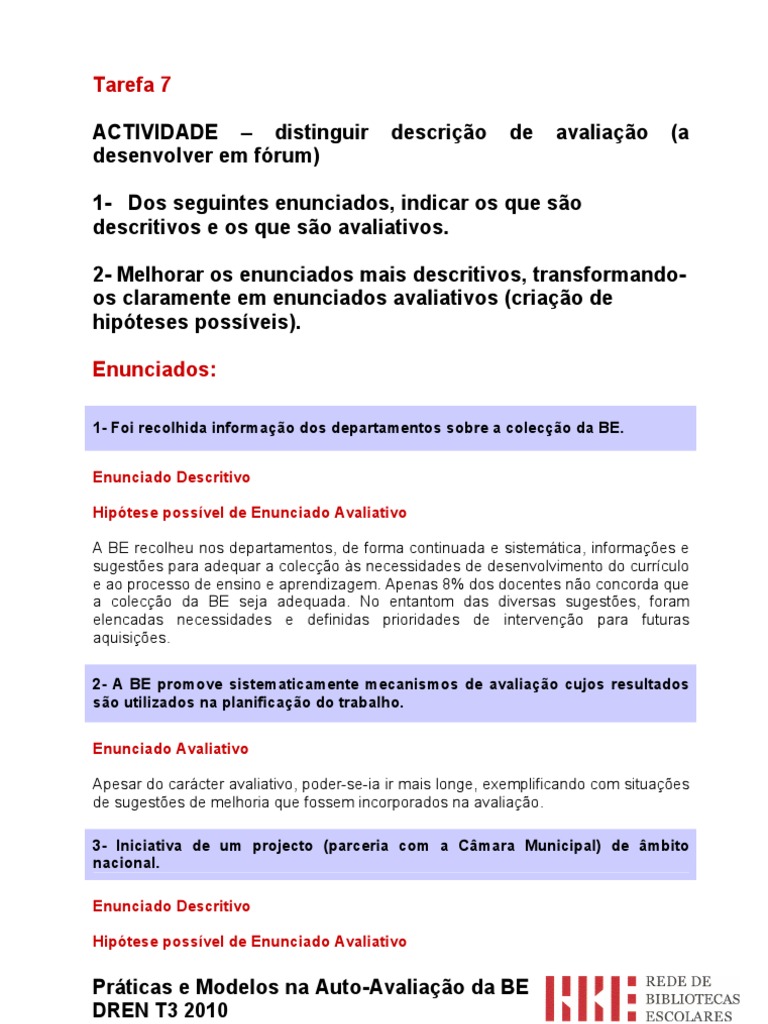 ACTIVIDADE – distinguir descrição de avaliação (a