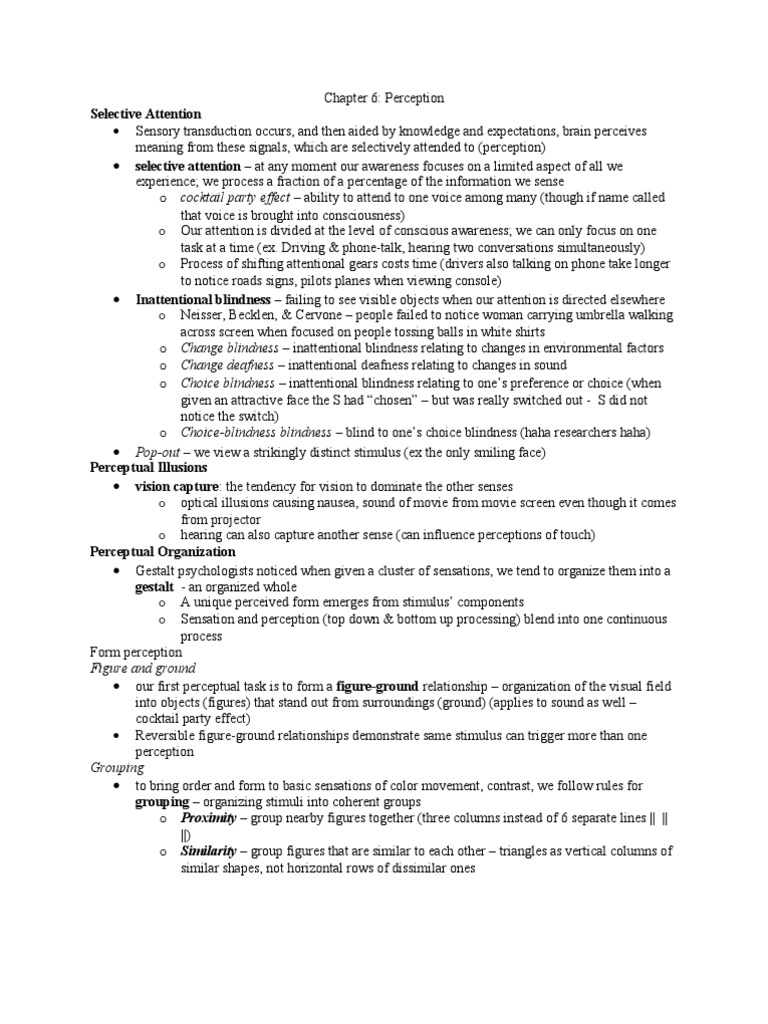 o Sensation and perception (top down & bottom up processing) blend into one continuous