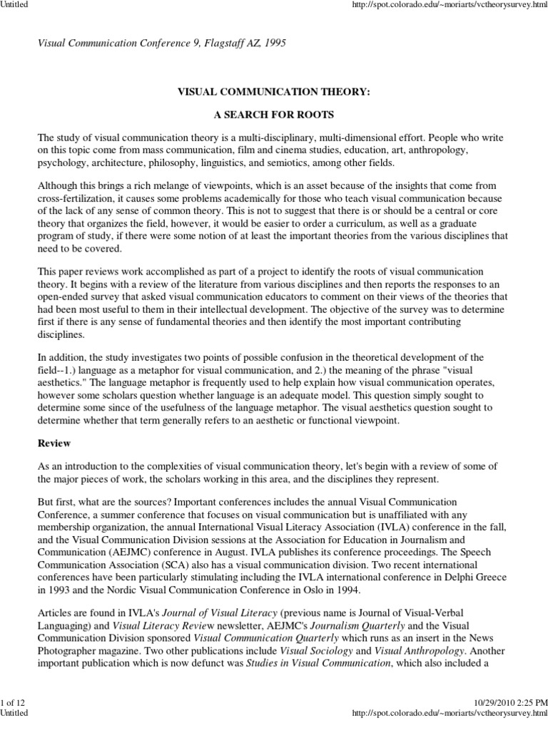 The objective of this project was to determine the breadth of the theoretical foundation of visual