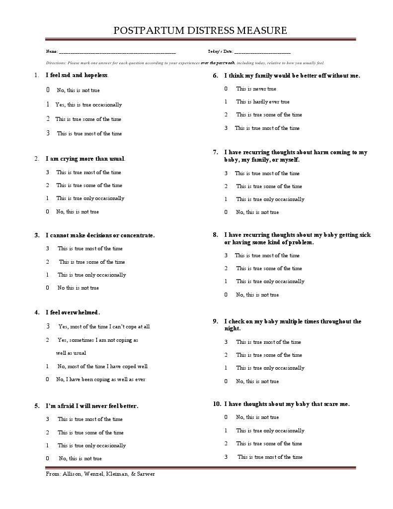 3. I cannot make decisions or concentrate. 8. I have recurring thoughts about my baby getting sick