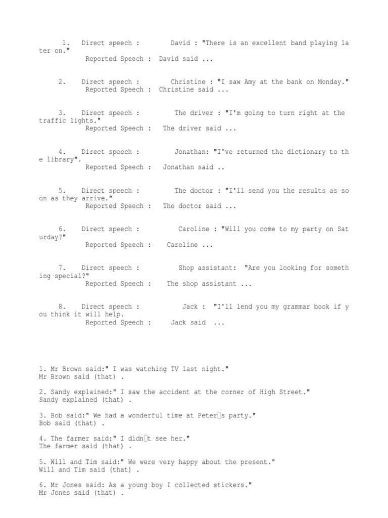 6. Direct speech : Caroline : "Will you come to my party on Sat