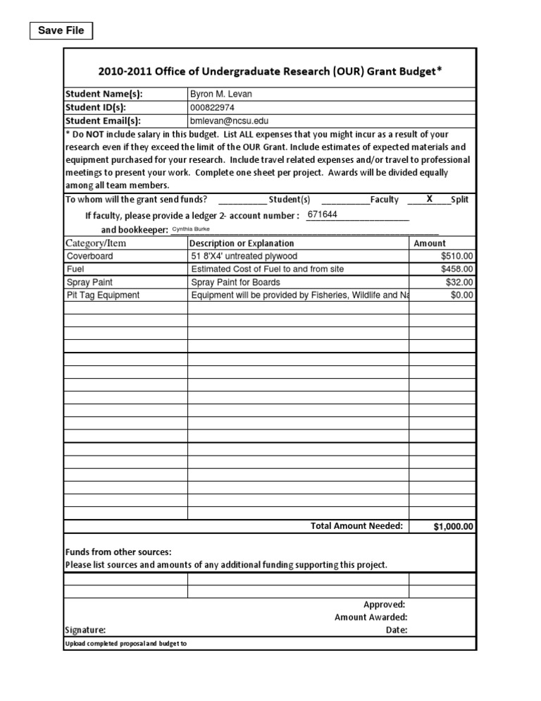research even if they exceed the limit of the OUR Grant. Include estimates of expected materials and