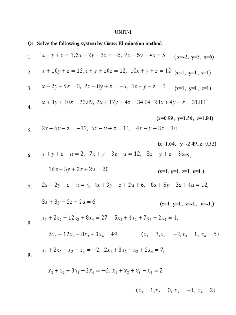 Q1. Solve the following system by Gauss Elimination method.