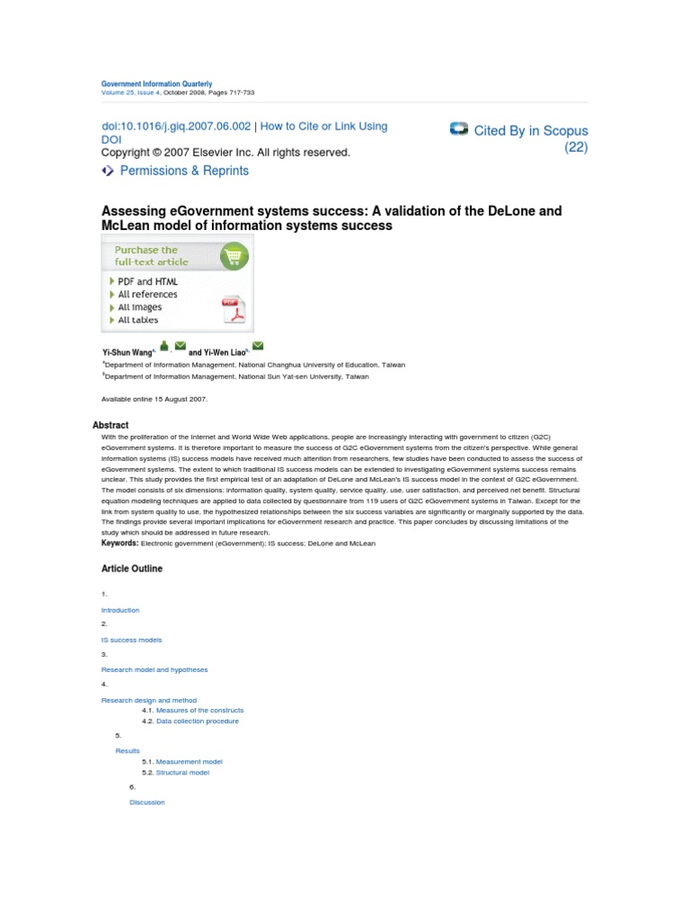 Assessing eGovernment systems success: A validation of the DeLone and McLean model of information systems success