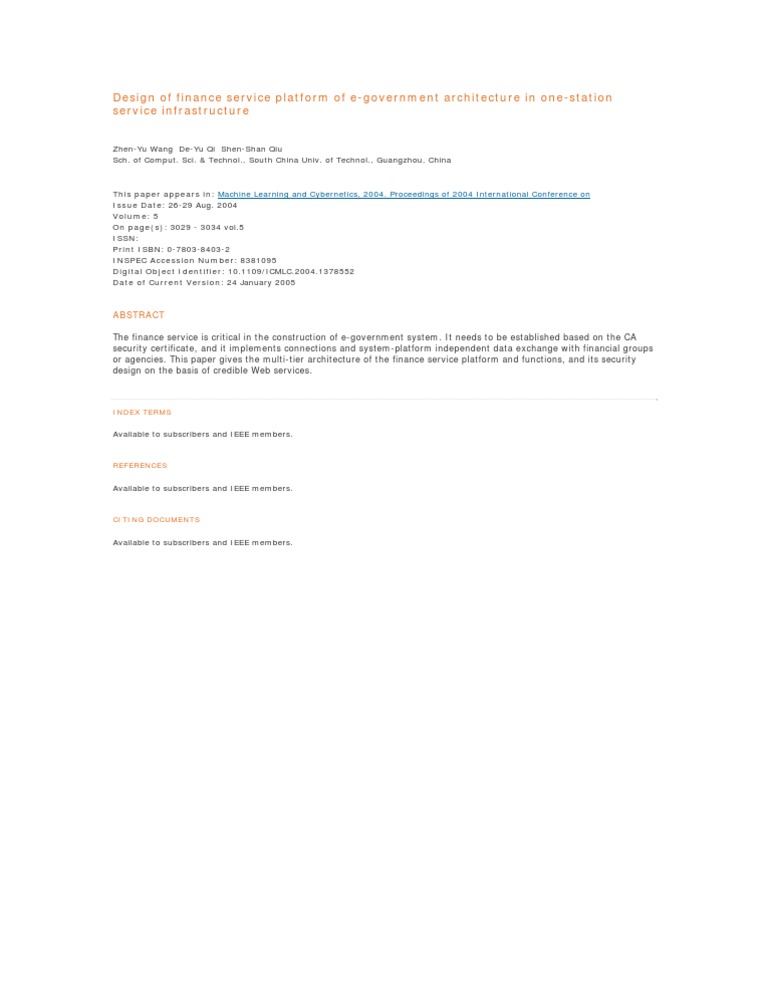 Design of finance service platform of e-government architecture in one-station service infrastructure