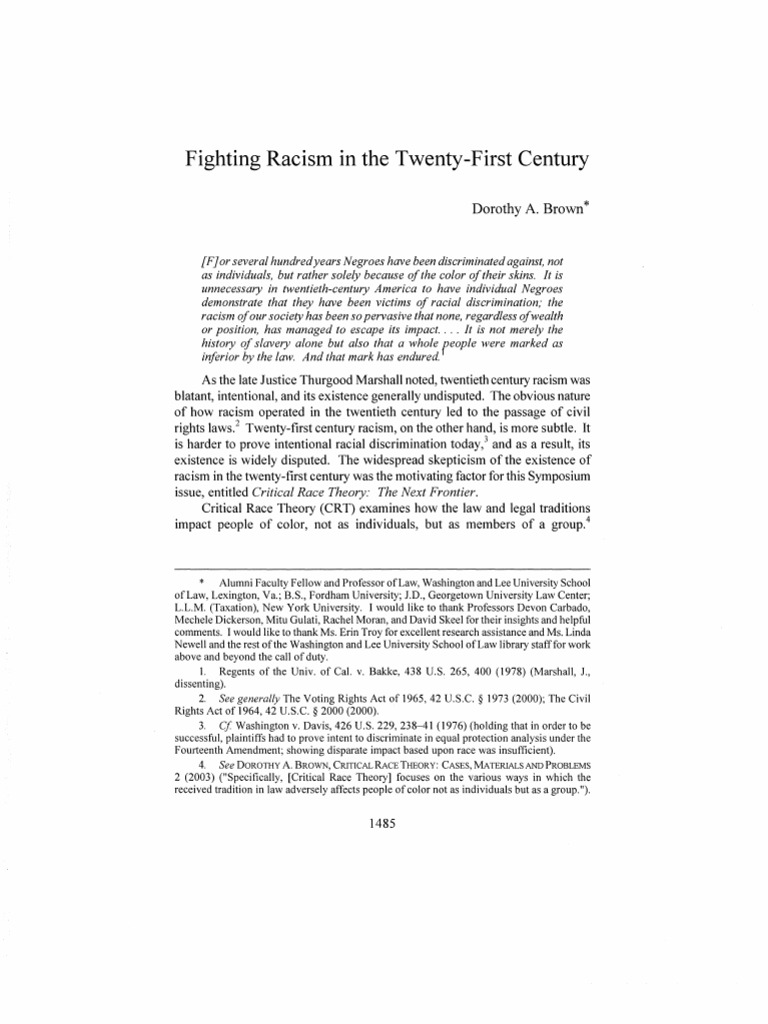 4. See DOROTHY A. BROWN, CRITICAL RACE THEORY: CASES, MATERIALS AND PROBLEMS