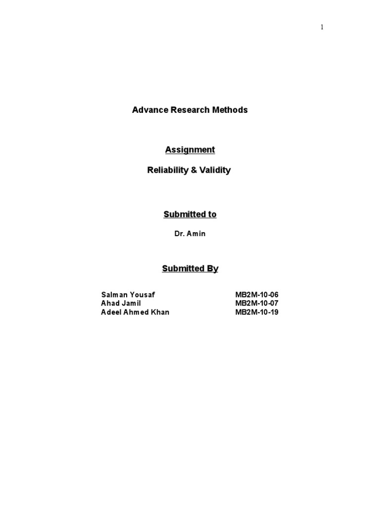 problem. Finally, be aware that reliability is necessary but not sufficient for