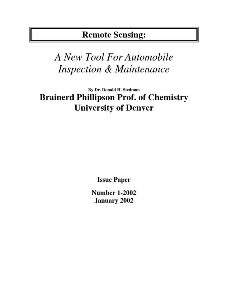 7. “New Emissions Test Would Cost More, Do Less,” D.H. Stedman, Rocky Mountain