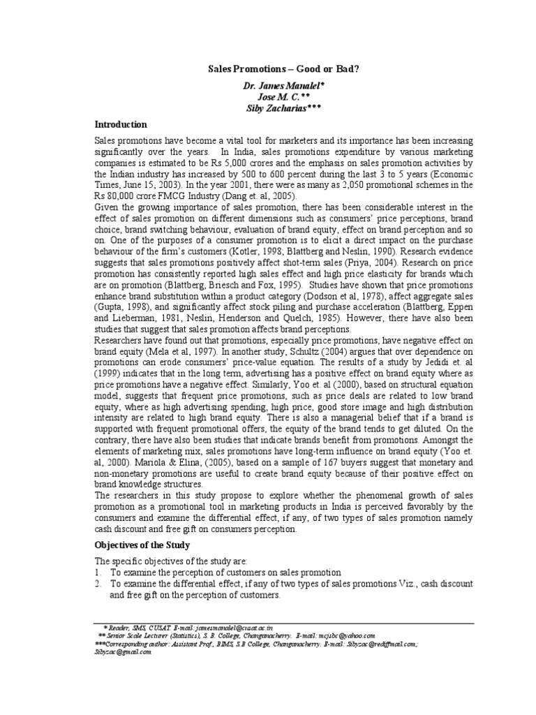 The study finds ample evidence to conclude sales promotion schemes are not perceived favorably