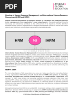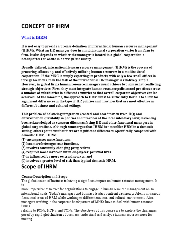 global corporations. Although some argue that IHRM is not unlike HRM in a domestic