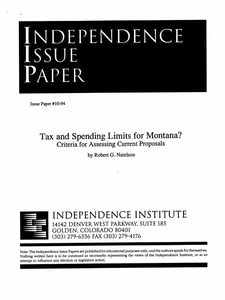 Should Montana adopt a constitutional limit on taxes or spending? In this paper,