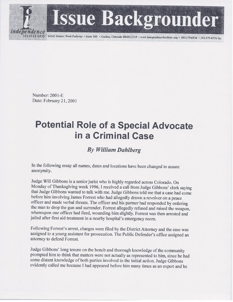 Itseems to me that Judge Gibbons was asking me to function as a special advocate in a