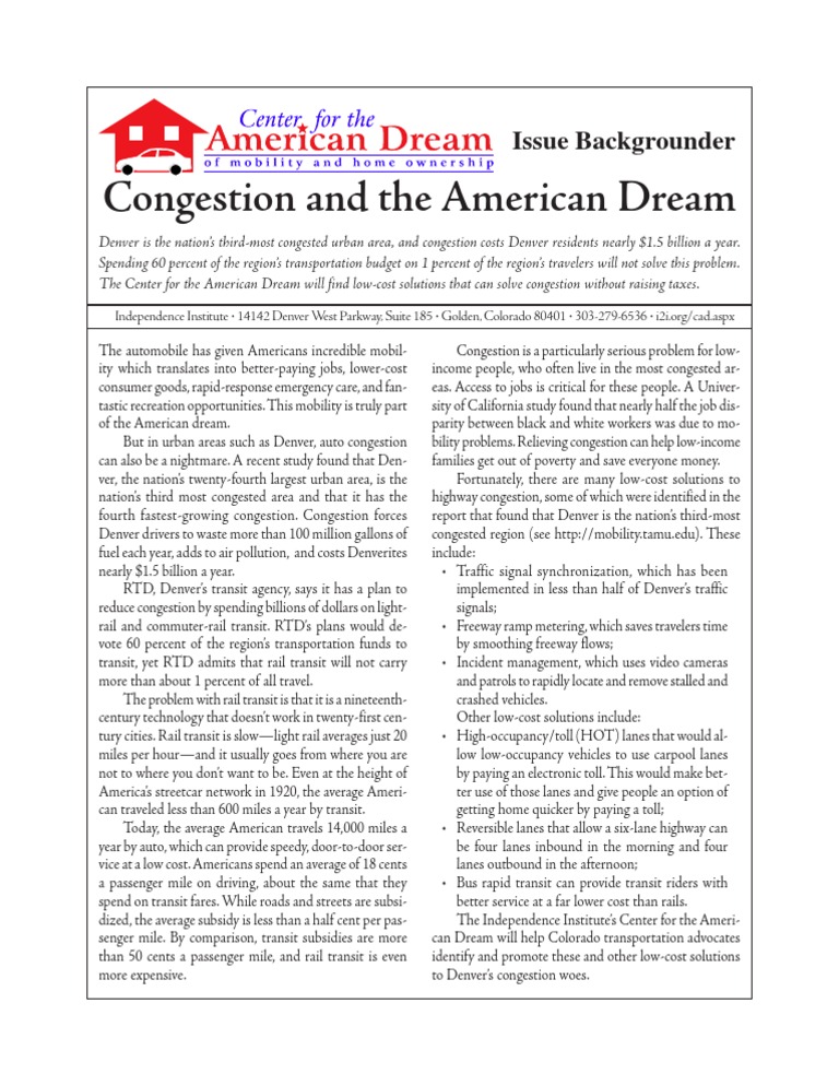 Congestion and The American Dream