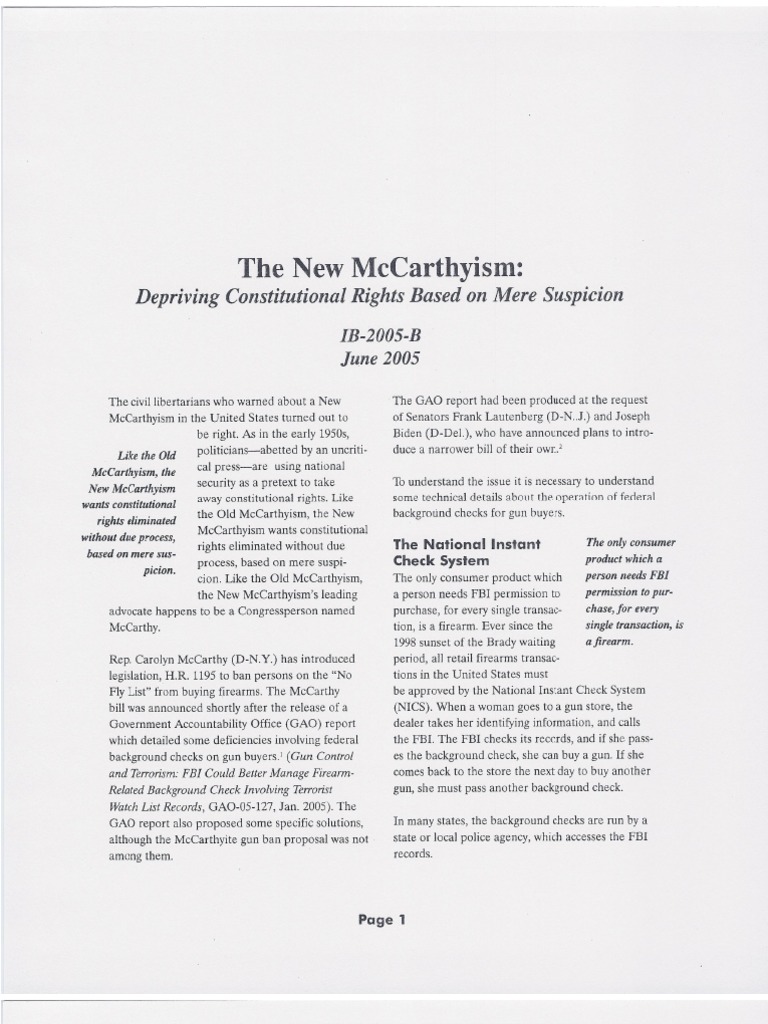 The New McCarthyism: Depriving Constitutional Rights Based On Mere Suspicion