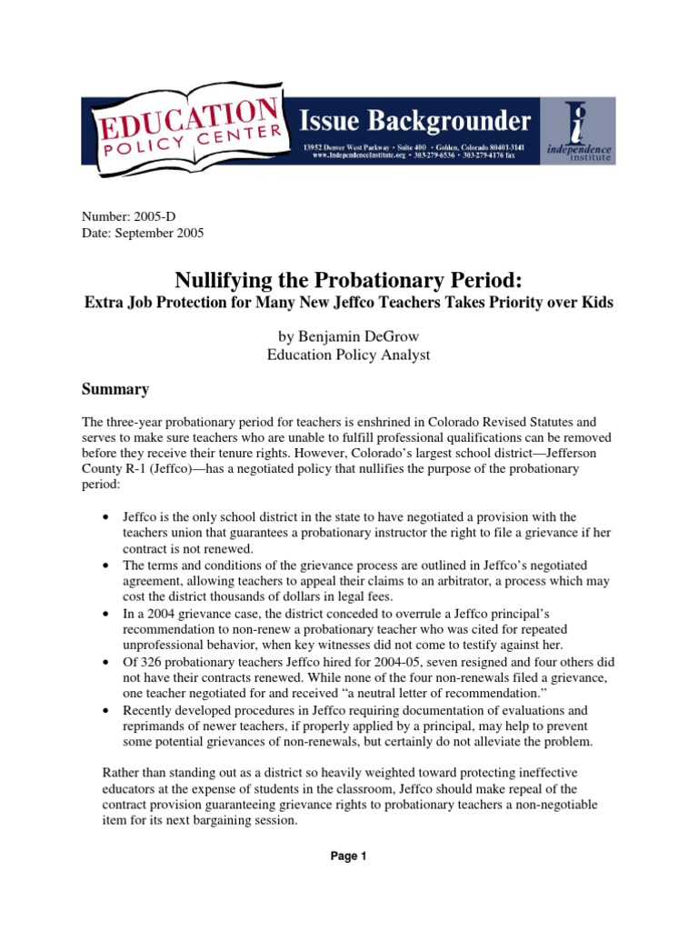 County R-1 (Jeffco)—has a negotiated policy that nullifies the purpose of the probationary