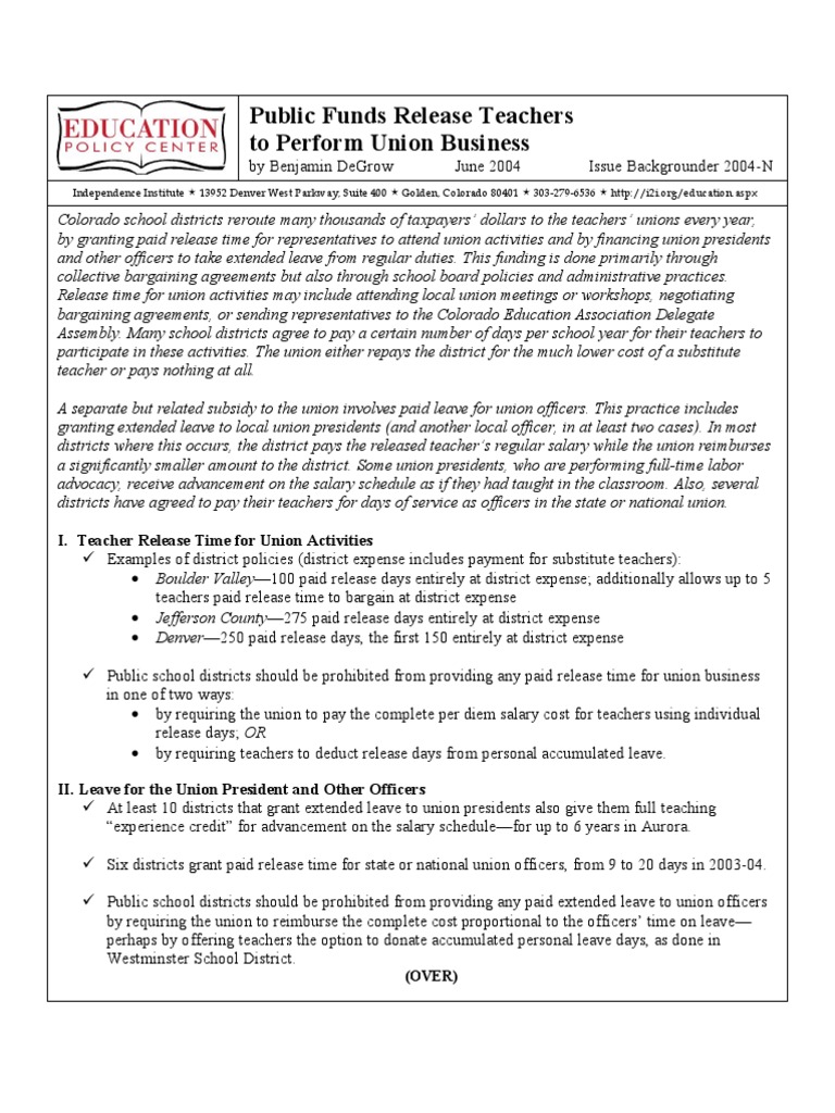 Colorado school districts reroute many thousands of taxpayers’ dollars to the teachers’ unions every year,