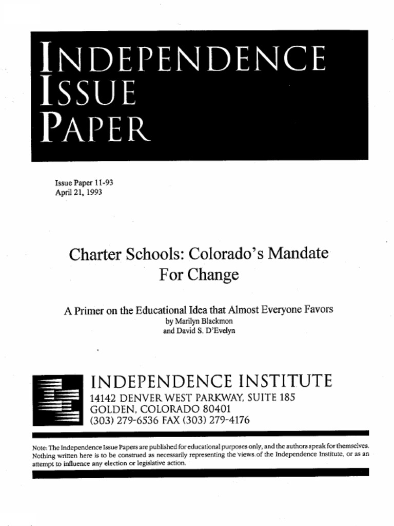 INDEPENDENCE ISSUE PAPER Issue Paper 11-93, April 21, 1993. Charter schools are an effective tool for solving that problem, says Marilyn Blackmon. Parents have the right to choose the education that is in the best interests of their children, she says.