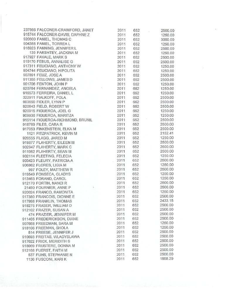 BONUS LIST -FALCONER -CRAWFORD, JANET TO MARSELL, FRED