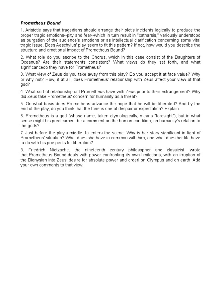 or why not? How, if at all, does Prometheus' relationship with Zeus affect your view of that