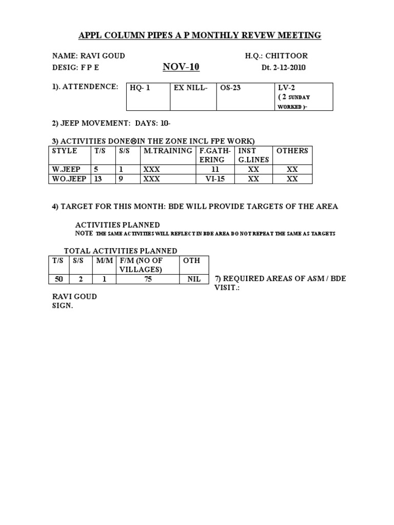 APPL COLUMN PIPES A P MONTHLY REVEW MEETING