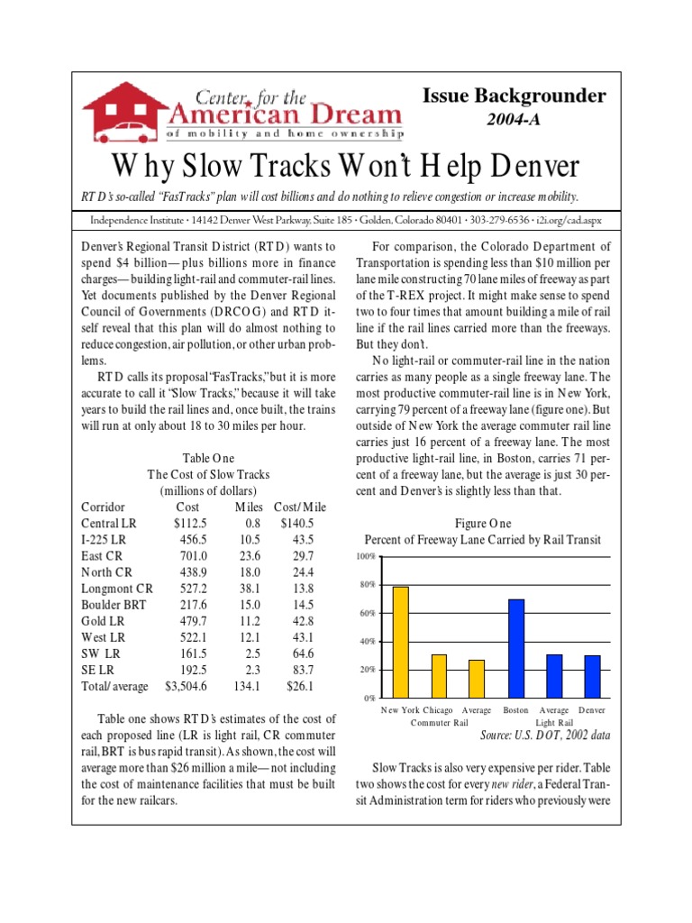 RTD calls its proposal “FasTracks,” but it is more carries as many people as a single freeway lane. The