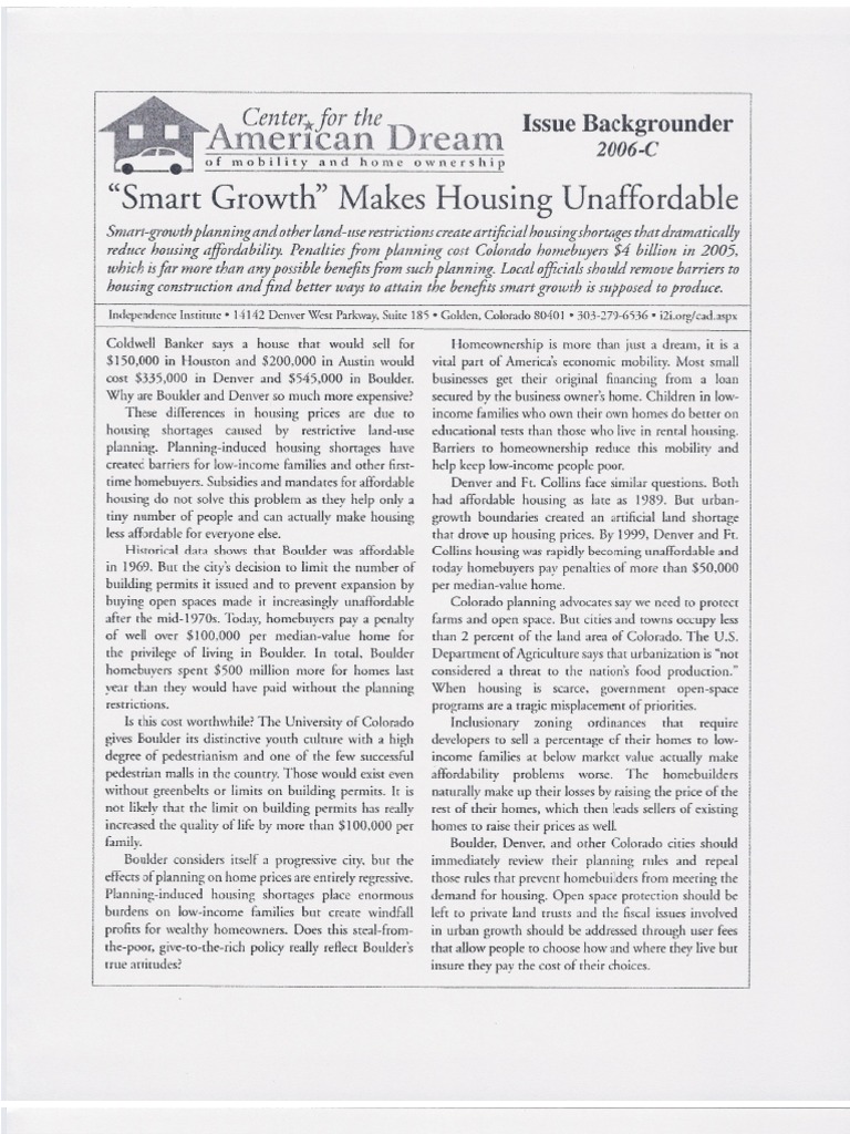 | reduce housing affordability. Penalties from planning cost Colorado homebuyers $4 billion in 2005,