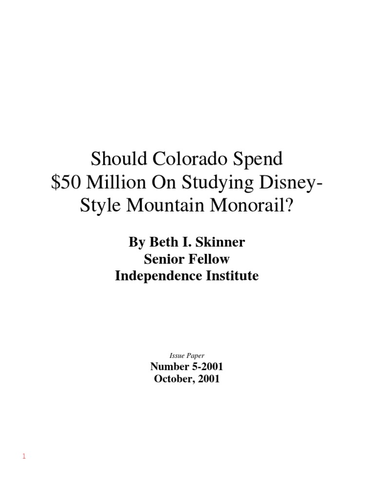 Should Colorado Spend $50 Million On Studying Disney - Style Mountain Monorail?