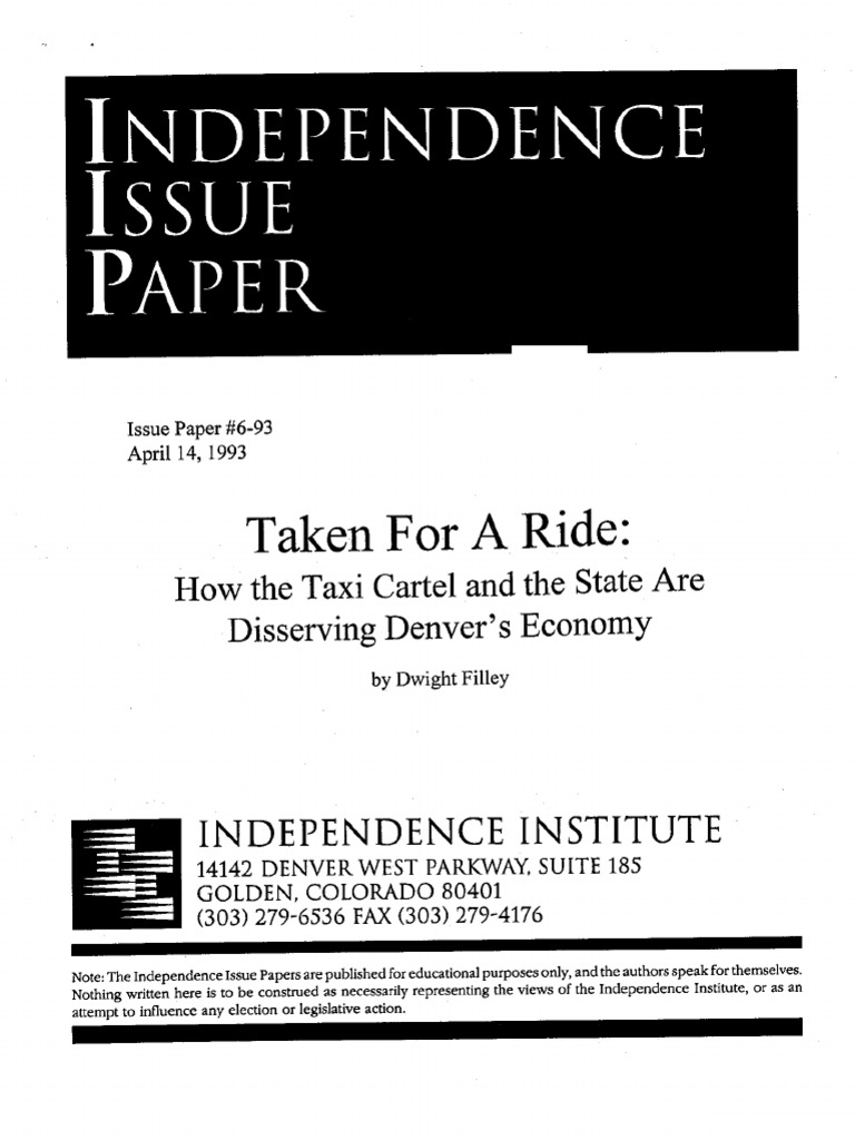 Taken For A Ride: How The Taxi Cartel and The State Are Disserving Denver's Economy