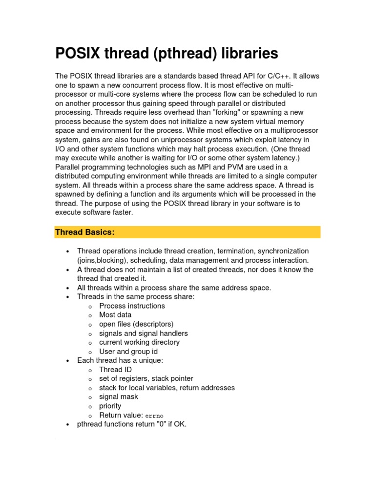 thread. The purpose of using the POSIX thread library in your software is to