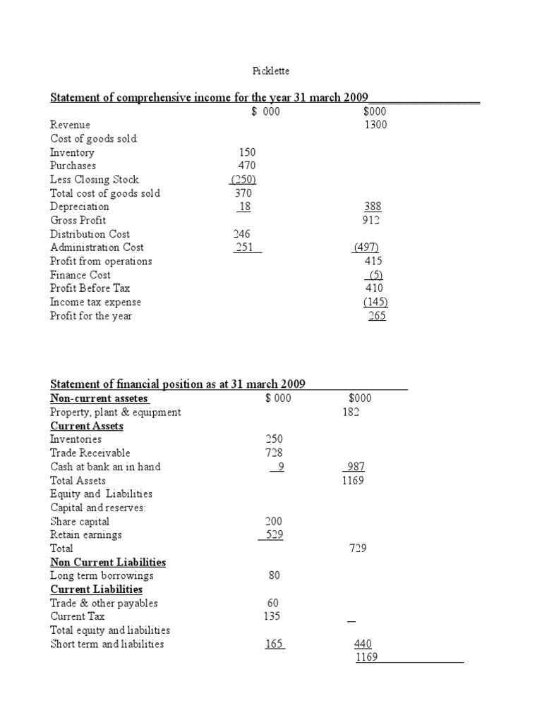 Statement of comprehensive income for the year 31 march 2009__________________