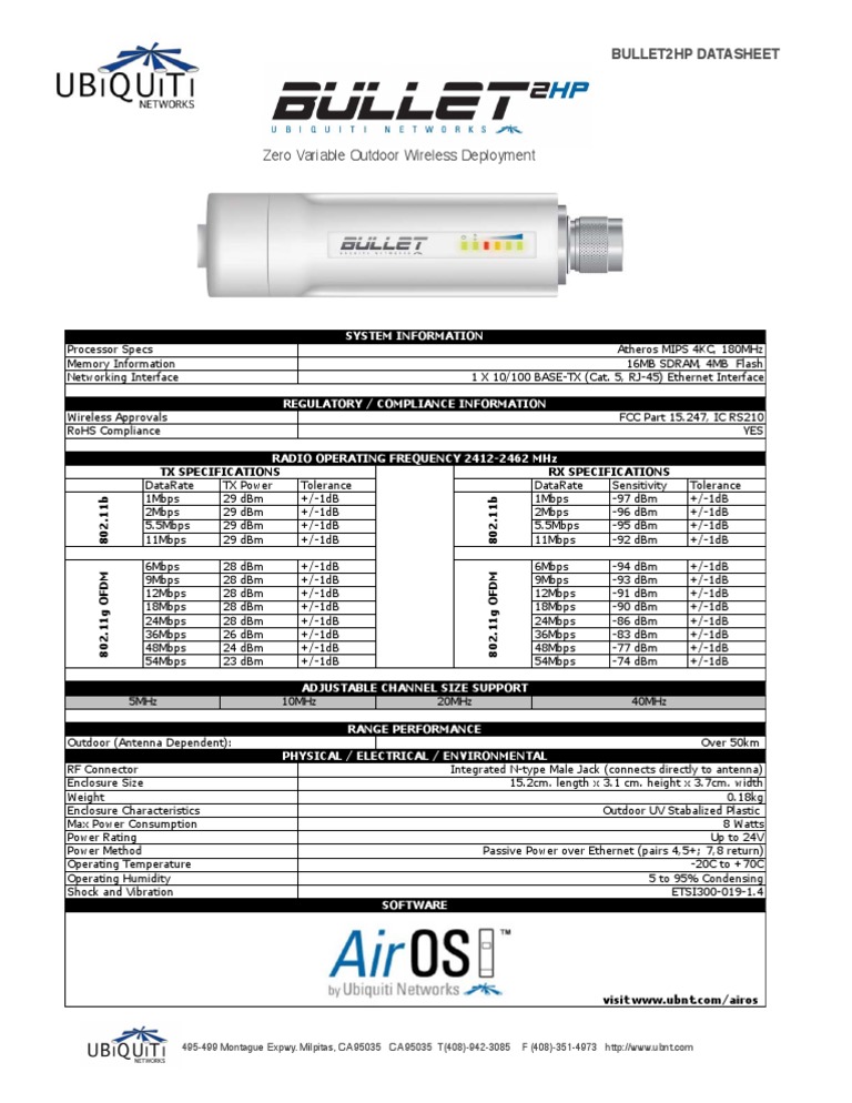 495-499 Montague Expwy. Milpitas, CA 95035 CA 95035 T(408)-942-3085 F (408)-351-4973 http://www.ubnt.com