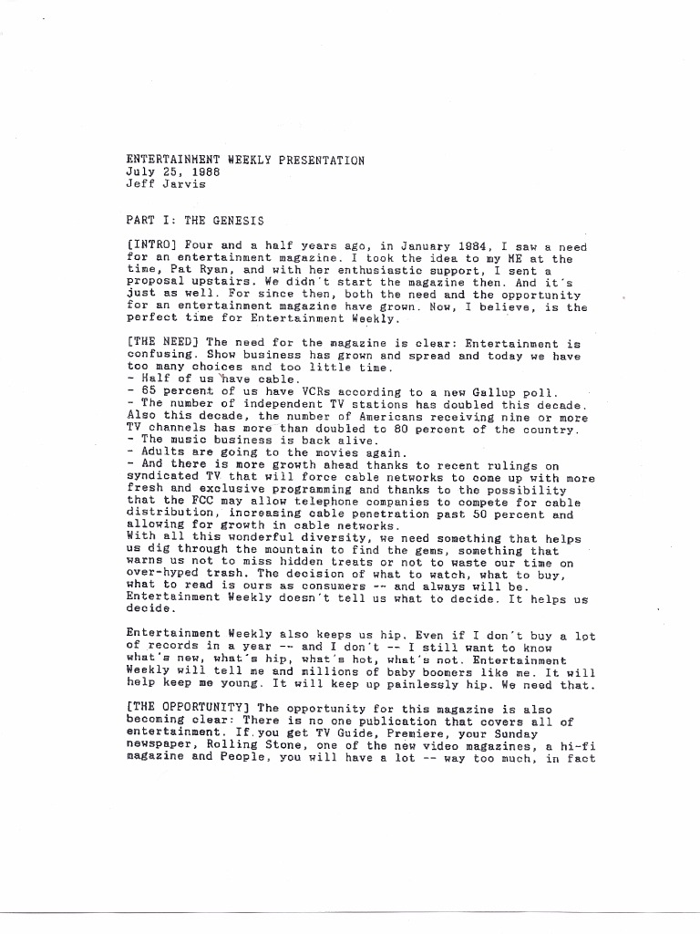 I believe that Entertainment Weekly meets the needs of consumers