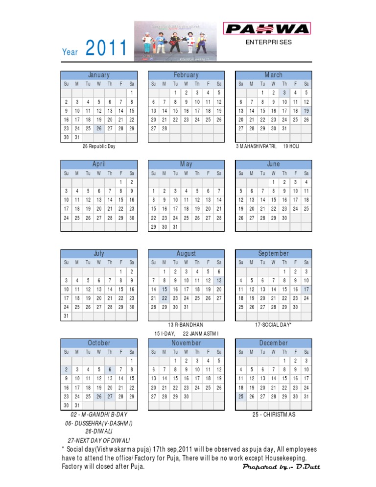 * Social day(Vishwakarma puja) 17th sep,2011 will be observed as puja day, All employees