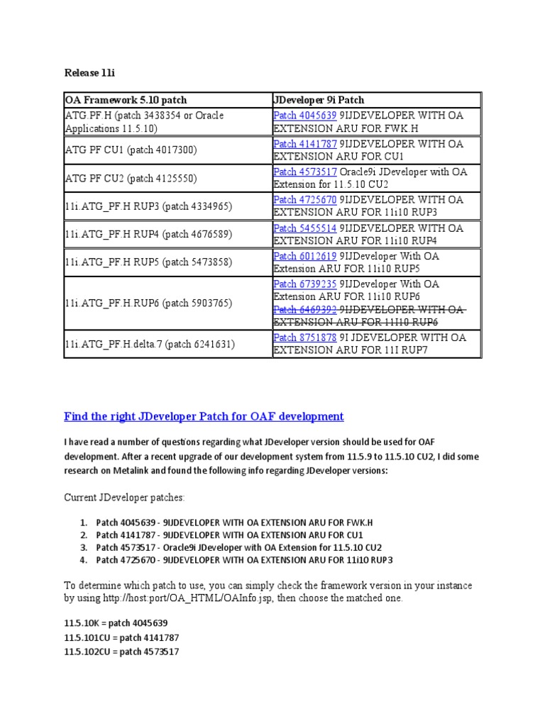 1. Patch 4045639 - 9IJDEVELOPER WITH OA EXTENSION ARU FOR FWK.H