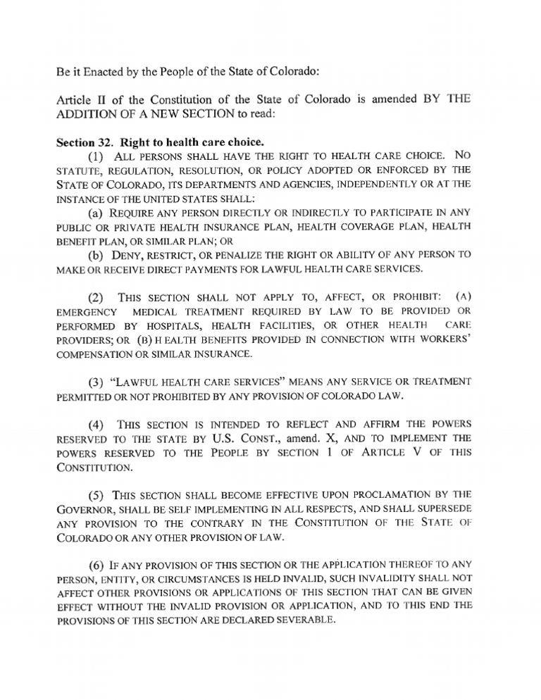 (1) ALL PERSONS SHALL HAVE THE RIGHT TO HEALTH CARE CHOICE. NO