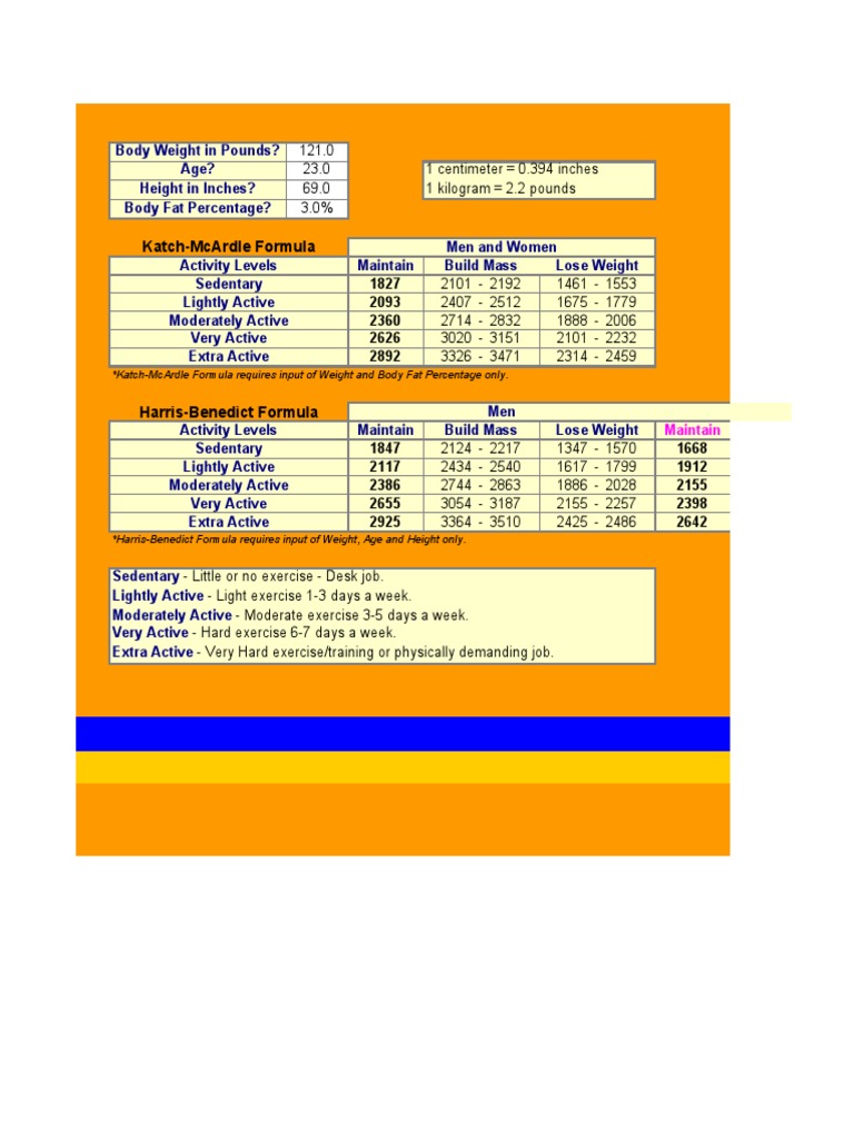 *Katch-McArdle Formula requires input of Weight and Body Fat Percentage only.