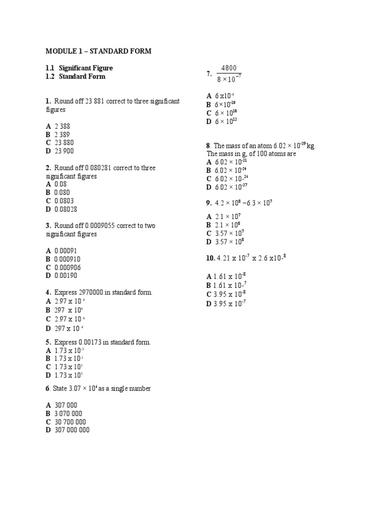 2. Round off 0.080281 correct to three B 6.02 × 10-24