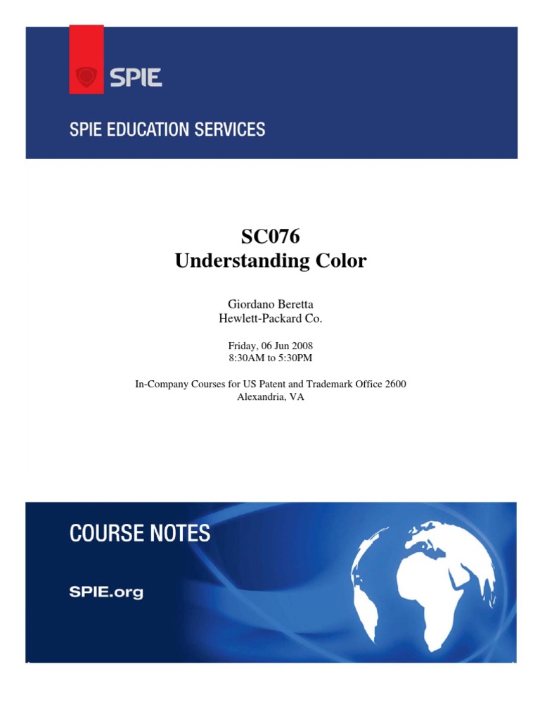 SC076 Understanding Color: Giordano Beretta Hewlett-Packard Co