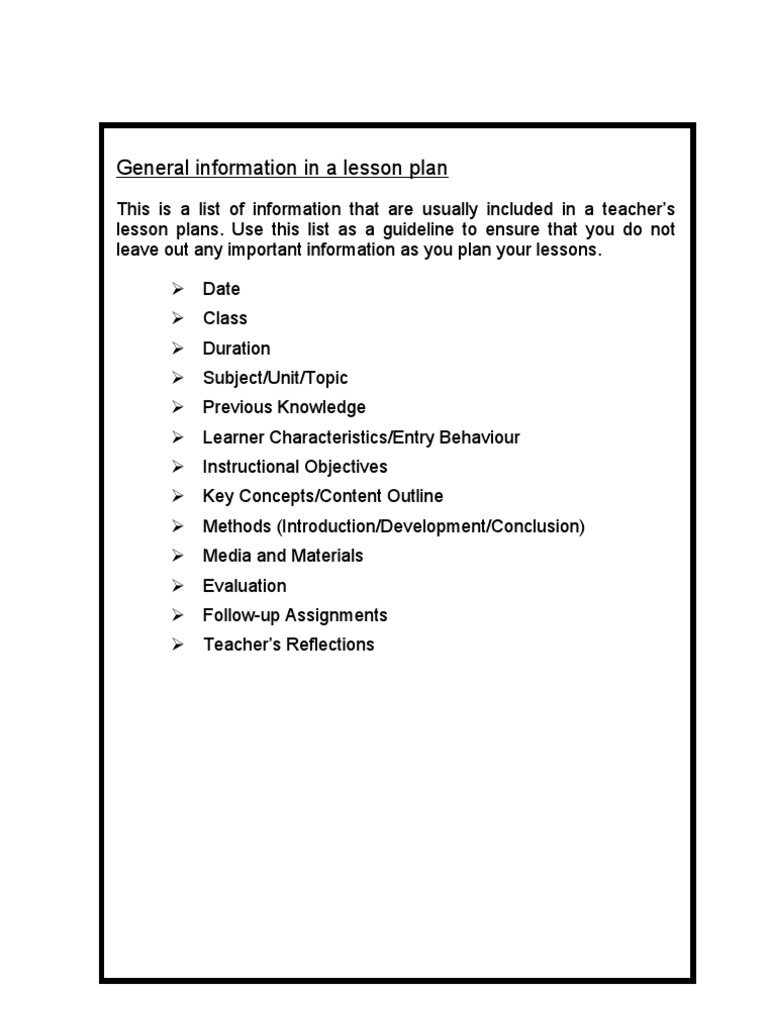 General information in a lesson plan