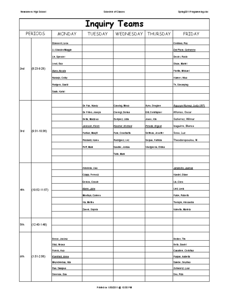 Newcomers High School Schedule of Classes Spring2011Programming.