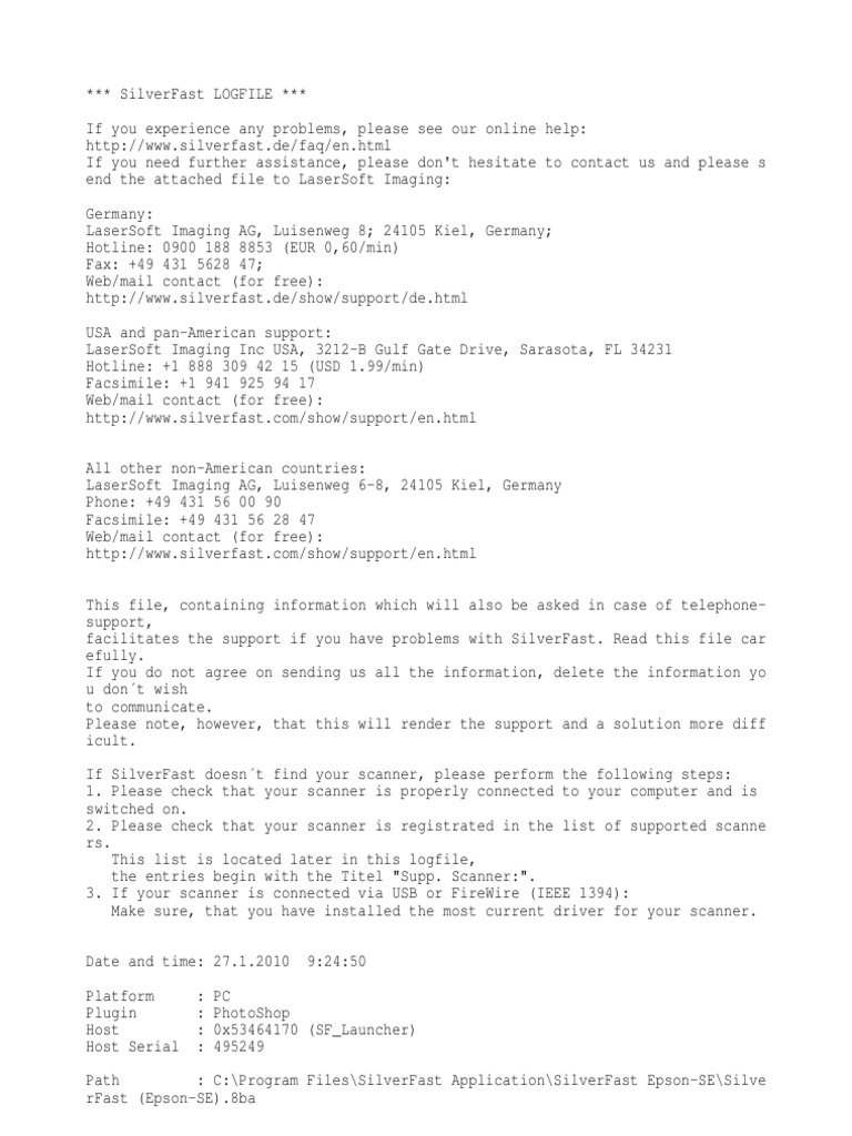 facilitates the support if you have problems with SilverFast. Read this file car