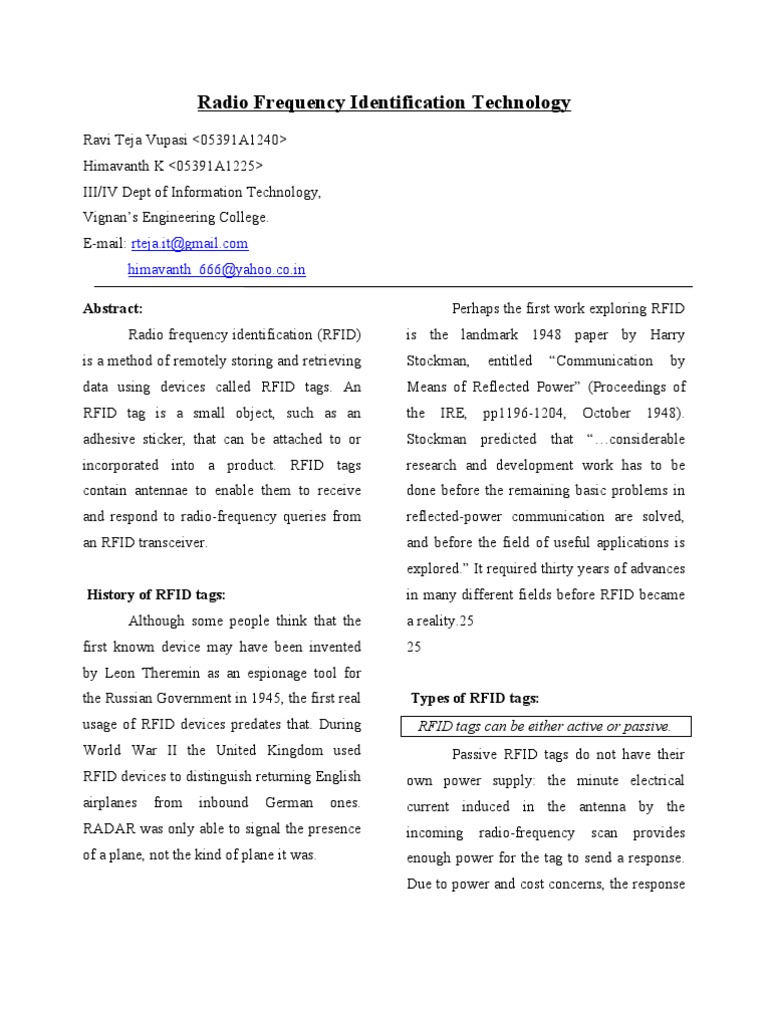 RFID tag is a small object, such as an the IRE, pp1196-1204, October 1948).