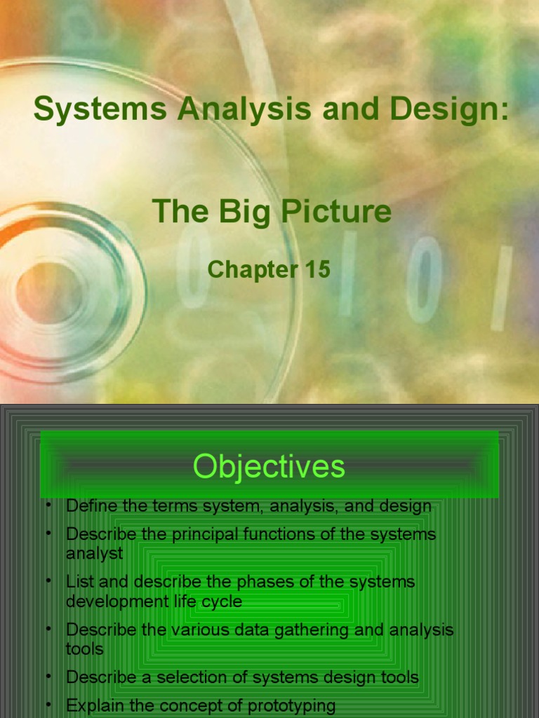 • Define the terms system, analysis, and design